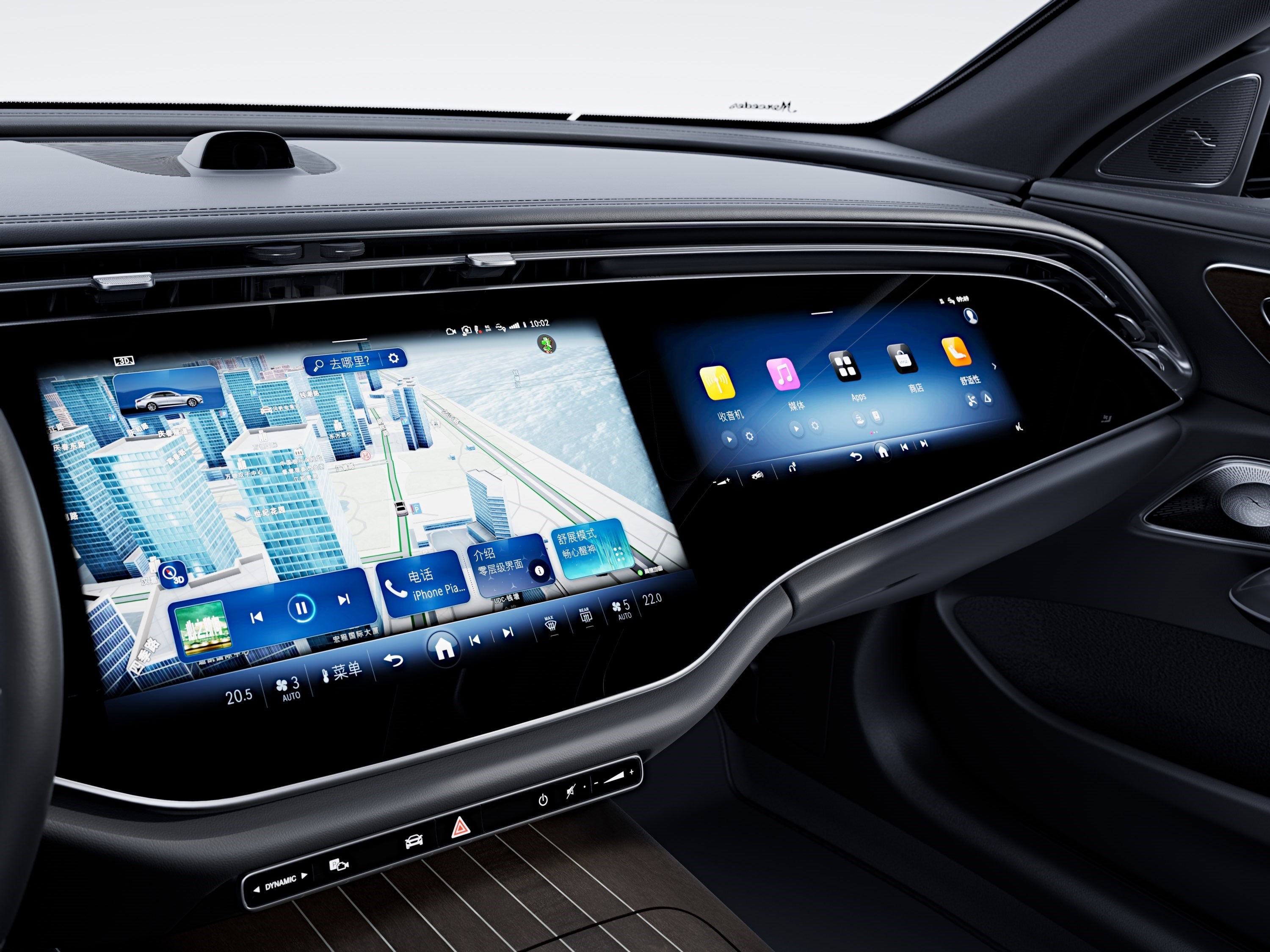 進入全新奔馳E級車內(nèi),可以說豪華+科技風相碰撞,整體氛圍非常吸睛,而車內(nèi)最耀眼的部分自然是全新大尺寸MBUX超級屏,這塊屏幕首發(fā)搭載了第三代MBUX智能人機交互系統(tǒng),同時也是豪華品牌中首款搭載高通8295芯片的車型,從而實現(xiàn)更多第三方車載應(yīng)用的搭載,例如抖音、玩游戲等等。此外,全新奔馳E級新增自拍攝像頭,支持人臉識別以及場景模式,便于用戶通過Zoom、Webex等拍攝照片或參加視頻會議(支持5G網(wǎng)絡(luò))