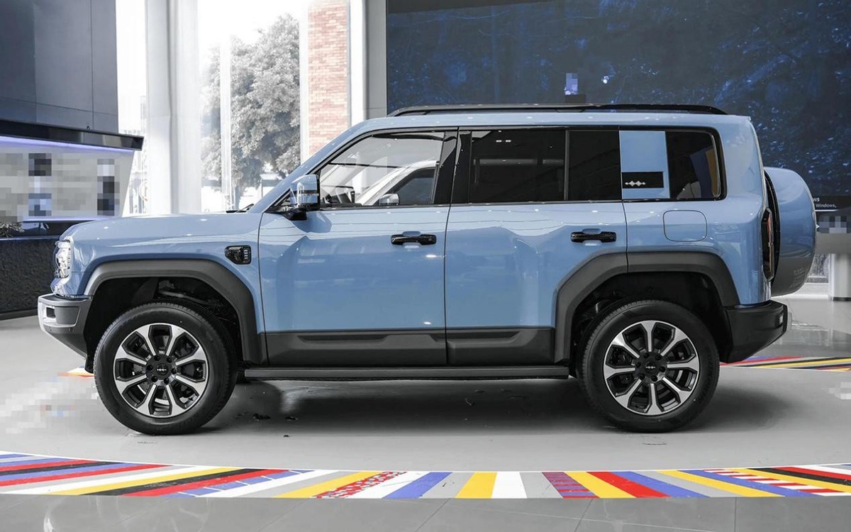 側(cè)面很方正,后車窗還配有小的爬升梯,看著很是硬派。另外,新車還是一款采用非承載式車身的SUV,這意味著整車的越野能力有一個基本的保障。