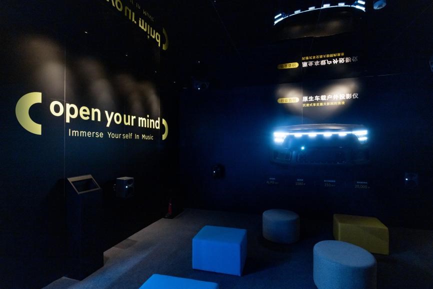 smart攜手世界公認領(lǐng)先的專業(yè)音頻廠商森海塞爾共建一座移動藝術(shù)影院,配合車規(guī)級投影儀,將展臺的一隅變成了沉浸感十足的影音視聽殿堂。用戶可以在這里感受森海塞爾典范音響系統(tǒng)的高端魅力,享受天籟之音。