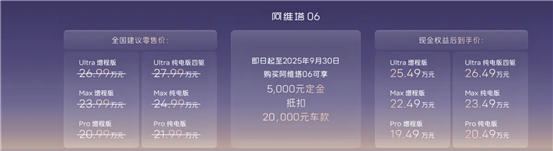 在2025成都車展期間,新款阿維塔06正式上市,此次新車在價格體系、核心配置、動力性能及外觀內(nèi)飾設(shè)計等方面均有調(diào)整,進(jìn)一步豐富了20萬級新能源轎車市場的選擇。新款阿維塔06售價區(qū)間為20.99-27.99萬元,部分車型可選裝特定配置并享受限時優(yōu)惠價。