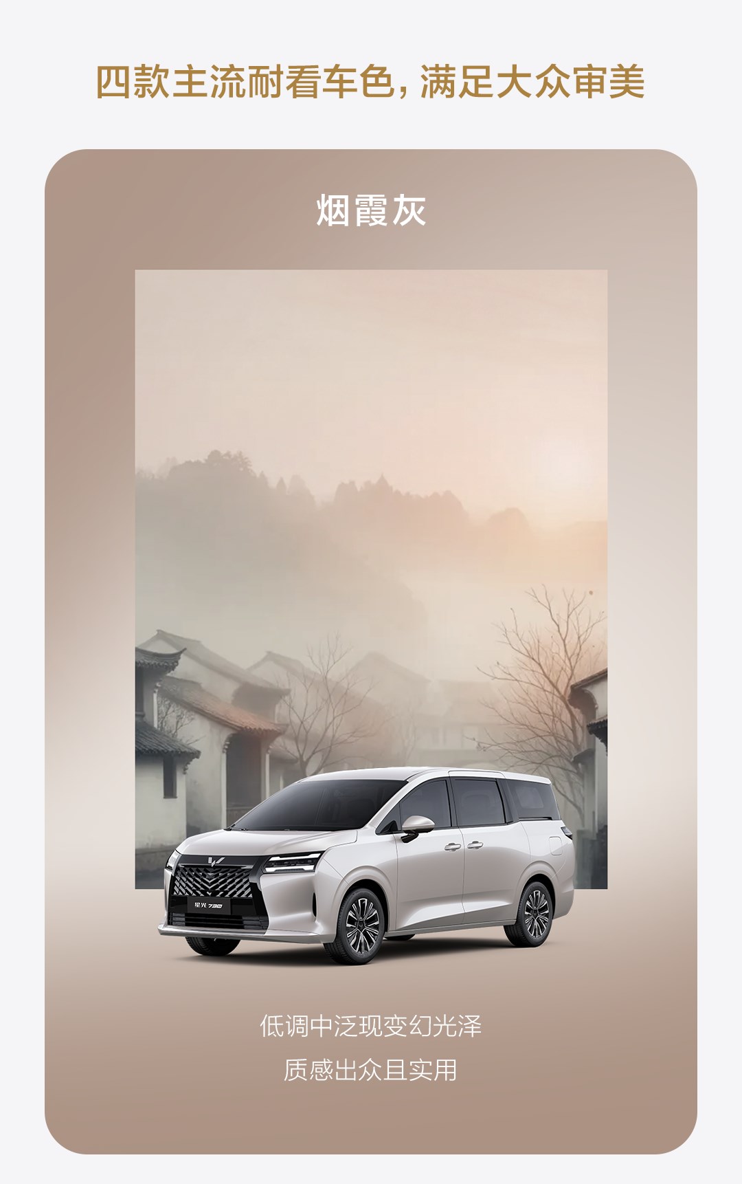 9月12日,買車網(wǎng)Buycar獲悉,五菱星光730車色正式公布,共推出煙霞灰、銀霜白、耀石黑、暮山紫四款車色。新車采用全新設(shè)計語言,車內(nèi)為七座布局,將提供汽油、插混和純電三種動力。